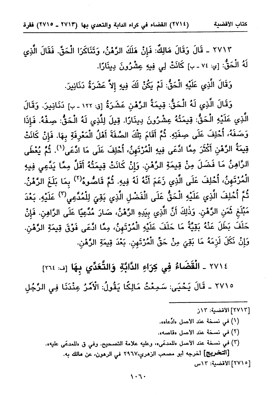 ٢٧١٤ - الْقَضَاءُ فِي كِرَاءِ الدَّابَّةِ وَالتَّعَدِّي بِهَا [ف: ٢٦٤]