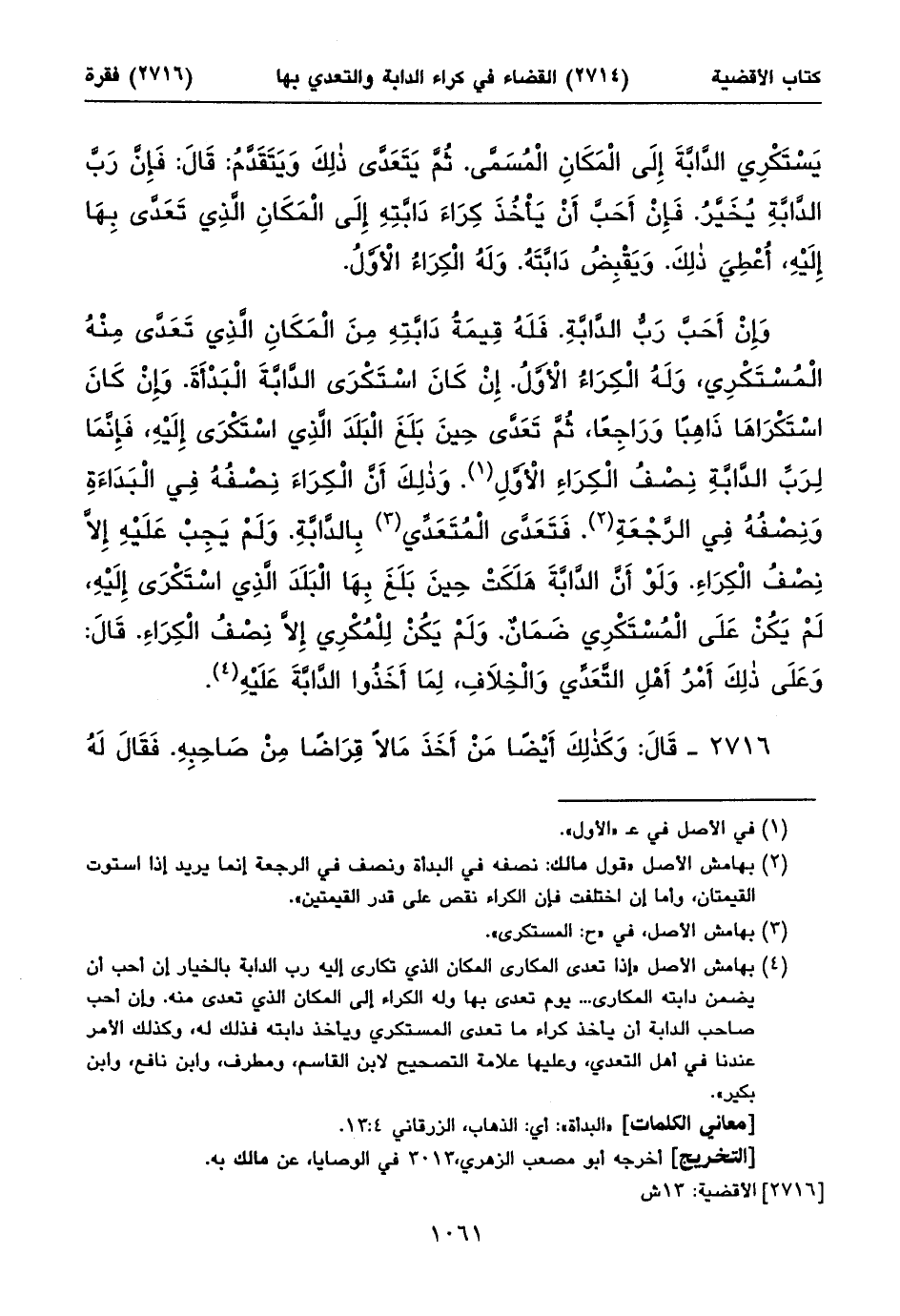 ٢٧١٦ - قَالَ: وَكَذلِكَ أَيْضاً مَنْ أَخَذَ مَالاً قِرَاضاً مِنْ صَاحِبِهِ. فَقَالَ لَهُ ⦗١٠٦٢⦘ رَبُّ الْمَالِ: لَا تَشْتَرِ بِهِ (١) حَيَوَاناً وَلَا سِلَعاً كَذَا وَكَذَا لِسِلَعٍ يُسَمِّيهَا. وَيَنْهَاهُ عَنْهَا. وَيَكْرَهُ أَنْ يَضَعَ مَالَهُ فِيهَا. فَيَشْتَرِي الَّذِي أَخَذَ الْمَالَ، الَّذِي نُهِيَ عَنْهُ. يُرِيدُ بِذلِكَ أَنْ يَضْمَنَ الْمَالَ، وَيَذْهَبَ بِرِبْحِ صَاحِبِهِ. فَإِذَا صَنَعَ ذلِكَ، فَرَبُّ الْمَالِ بِالْخِيَارِ. إِنْ أَحَبَّ أَنْ [ي: ٧٥ - أ] يَدْخُلَ مَعَهُ فِي السِّلْعَةِ عَلَى مَا شَرَطَا بَيْنَهُمَا مِنَ الرِّبْحِ، فَعَلَ.
