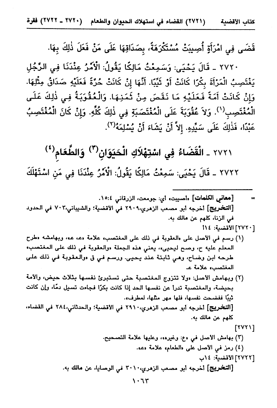٢٧٢١ - الْقَضَاءُ فِي اسْتِهْلَاكِ الْحَيَوَانِ (١) وَالطَّعَامِ (٢)