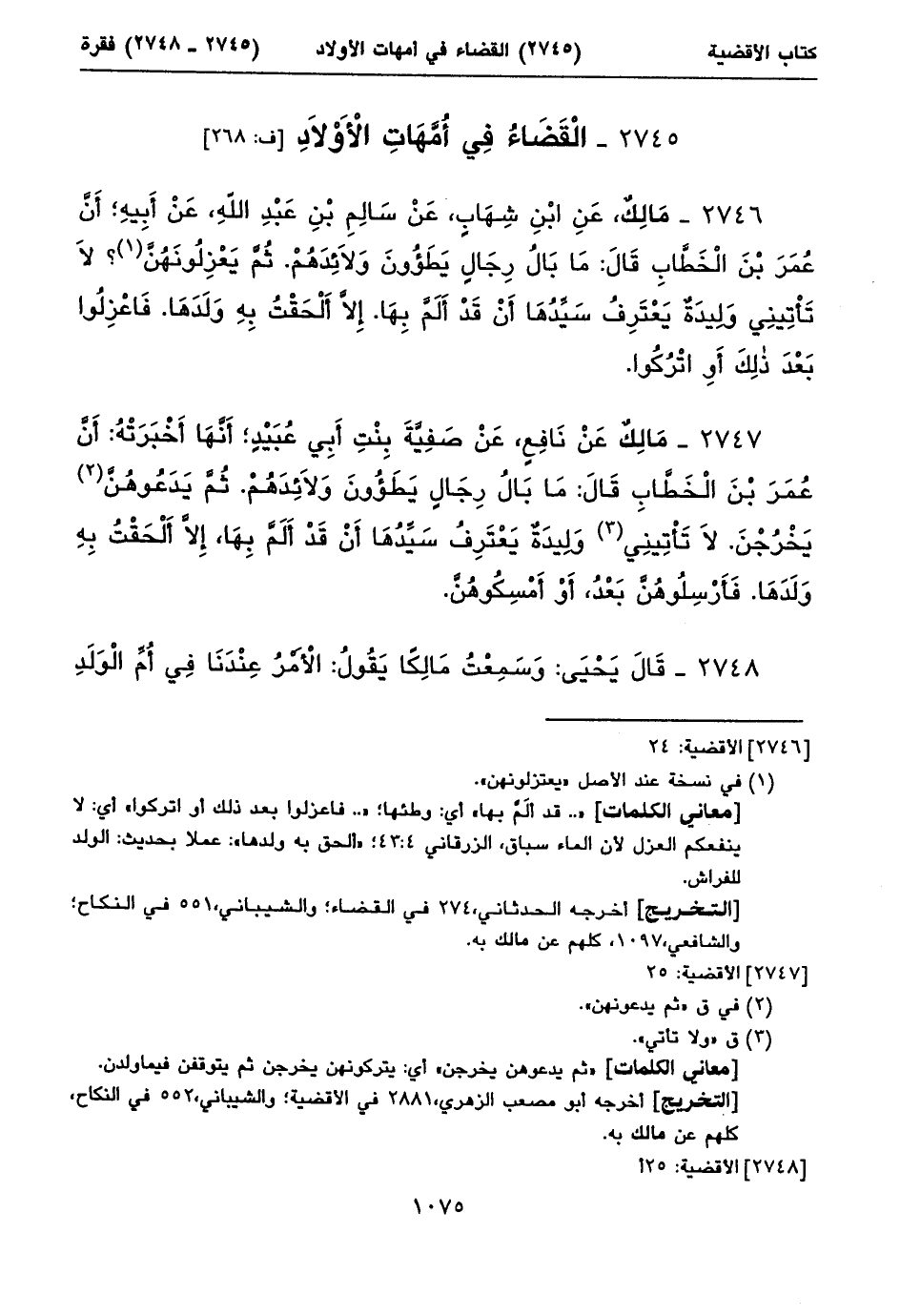 « .. قد ألَمَّ بها» أي: وطئها؛ « .. فاعزلوا بعد ذلك أو اتركوا» أي: لا ينفعكم العزل لأن الماء سباق، الزرقاني ٤: ٤٣؛ «ألحق به ولدها»: عملا بحديث: الولد للفراش.