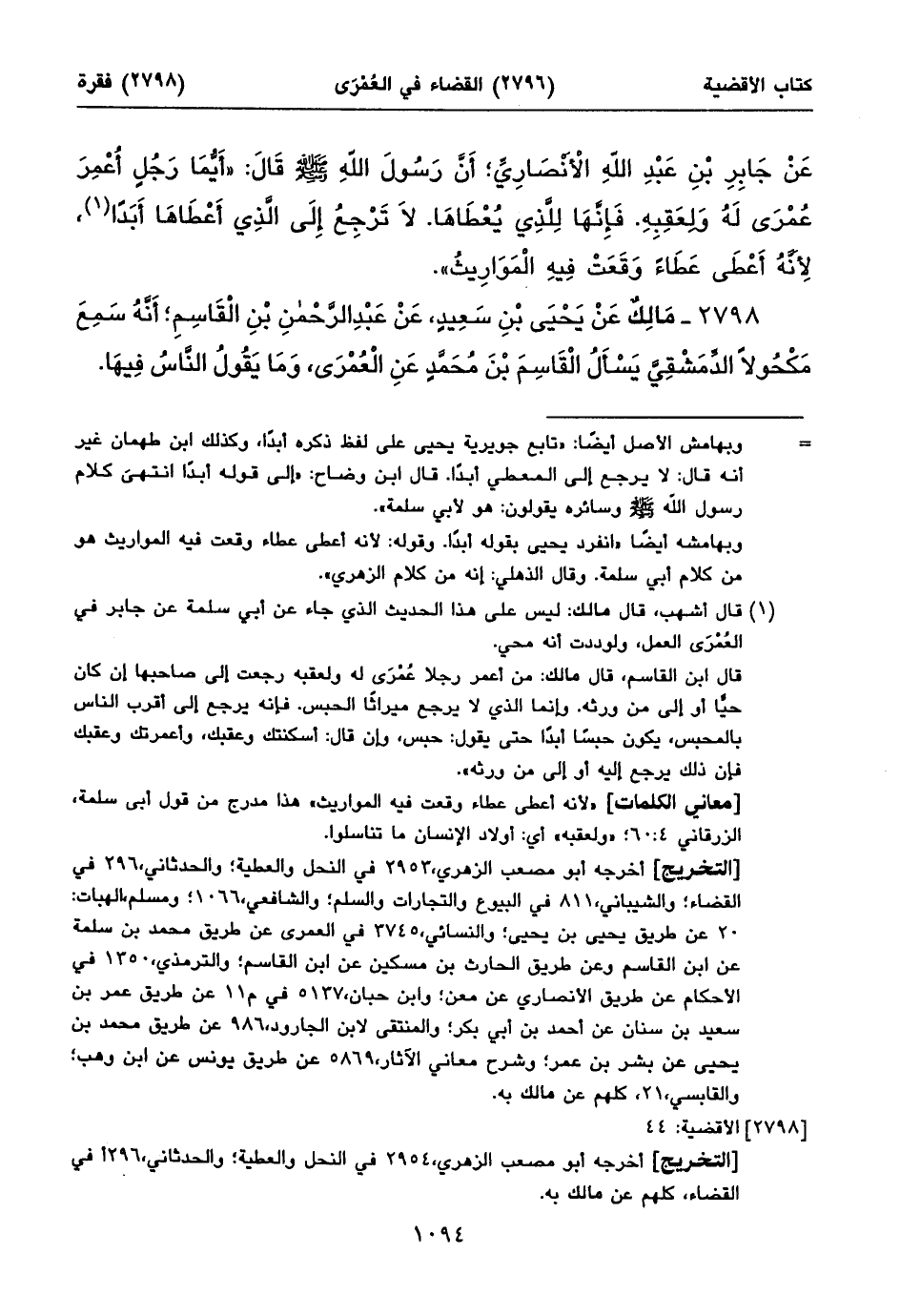 ٢٧٩٨ - مَالِكٌ عَنْ يَحْيَى بْنِ سَعِيدٍ، عَنْ عَبْدِ الرَّحْمنِ بْنِ الْقَاسِمِ؛ أَنَّهُ سَمِعَ مَكْحُولاً الدِّمَشْقِيَّ يَسْأَلُ الْقَاسِمَ بْنَ مُحَمَّدٍ عَنِ الْعُمْرَى، وَمَا يَقُولُ النَّاسُ فِيهَا. ⦗١٠٩٥⦘
