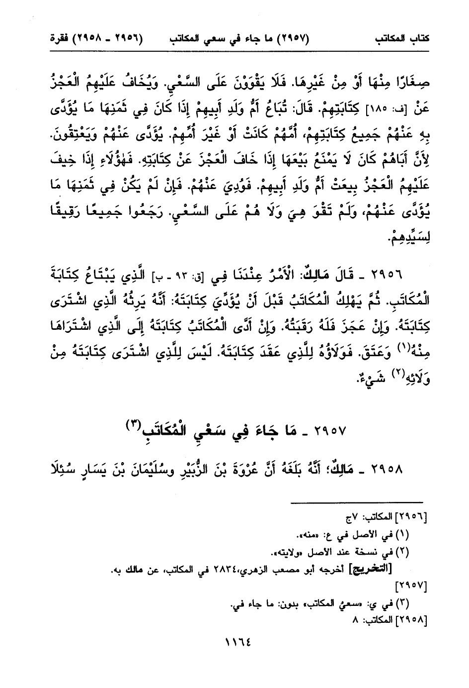 أخرجه أبو مصعب الزهري، ٢٨٣٥ في المكاتب؛ وأبو مصعب الزهري، ٢٨٣٦ في المكاتب؛ والحدثاني، ٤٤٣ب في المكاتب والمدبر؛ والحدثاني، ٤٤٣ج في المكاتب والمدبر؛ والشيباني، ٨٥٩ في العتاق، كلهم عن مالك به.