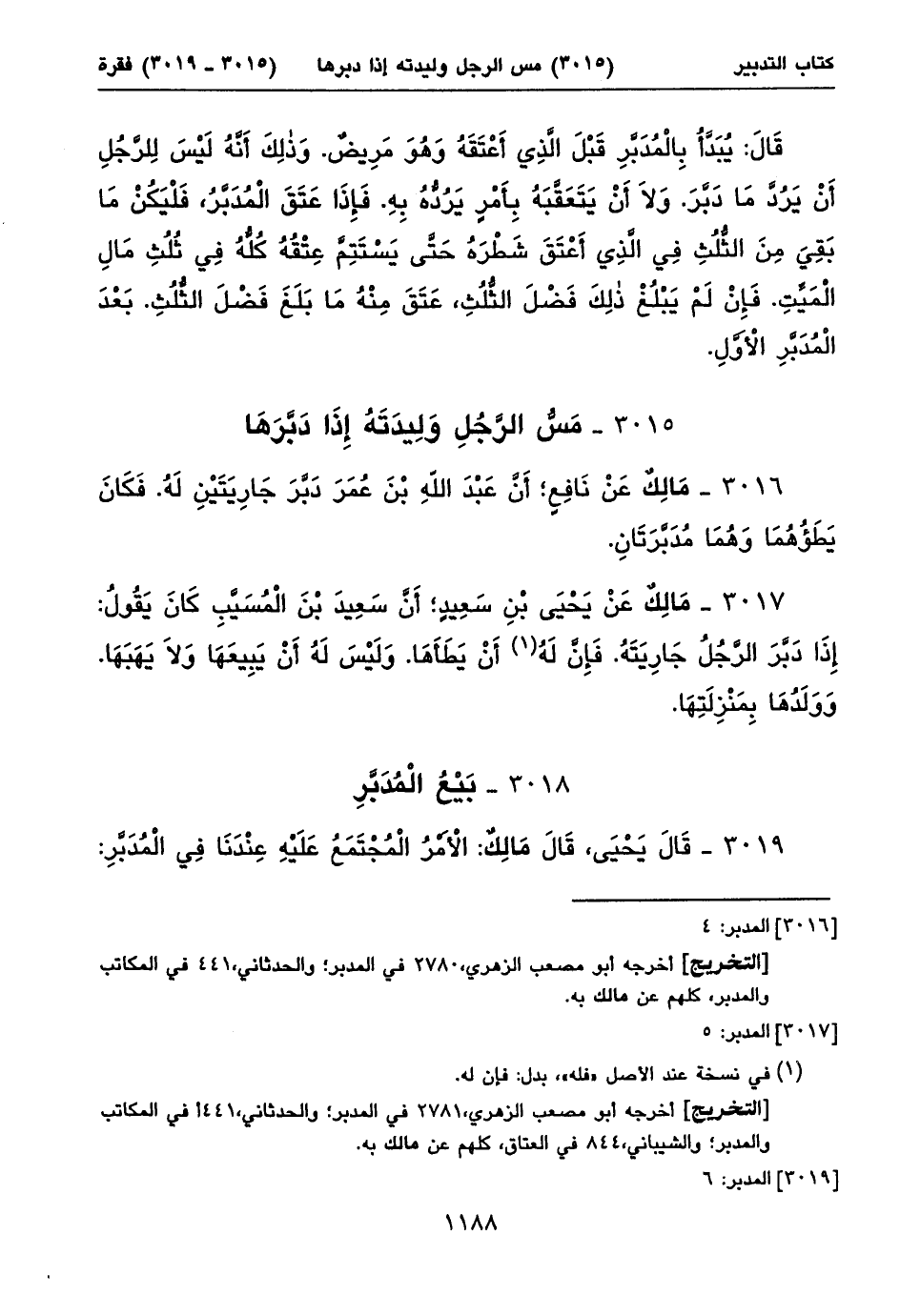 أخرجه أبو مصعب الزهري، ٢٧٨١ في المدبر؛ والحدثاني، ٤٤١أفي المكاتب والمدبر؛ والشيباني، ٨٤٤ في العتاق، كلهم عن مالك به.