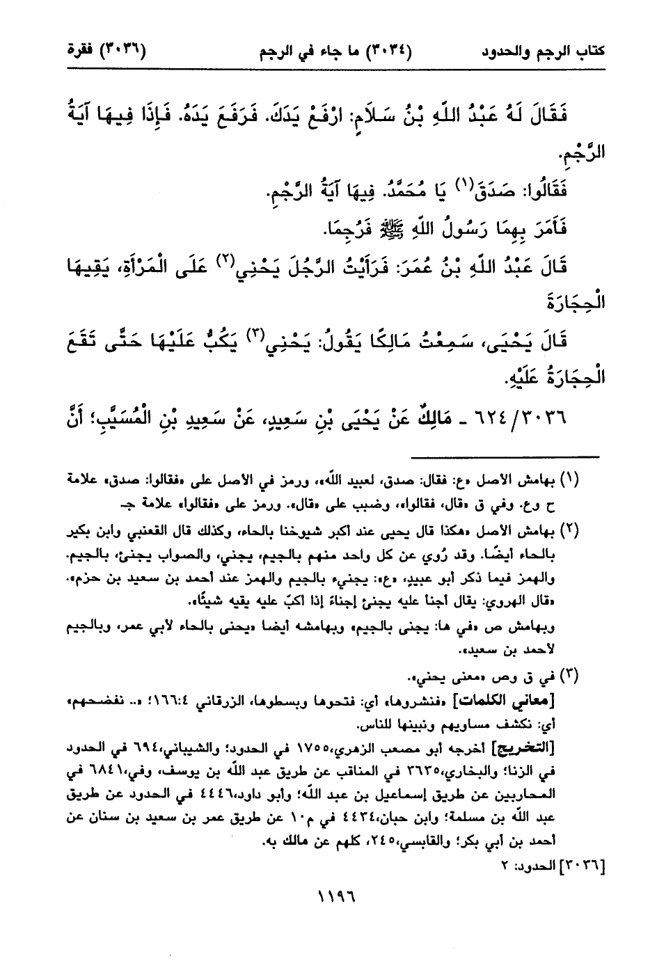 ٣٠٣٦/ ٦٢٤ - مَالِكٌ عَنْ يَحْيَى بْنِ سَعِيدٍ، عَنْ سَعِيدِ بْنِ الْمُسَيَّبِ؛ أَنَّ ⦗١١٩٧⦘ رَجُلاً مِنْ أَسْلَمَ (١) جَاءَ إِلَى أَبِي بَكْرٍ الصِّدِّيقِ فَقَالَ لَهُ: إِنَّ الْأَخِرَ زَنَى (٢).