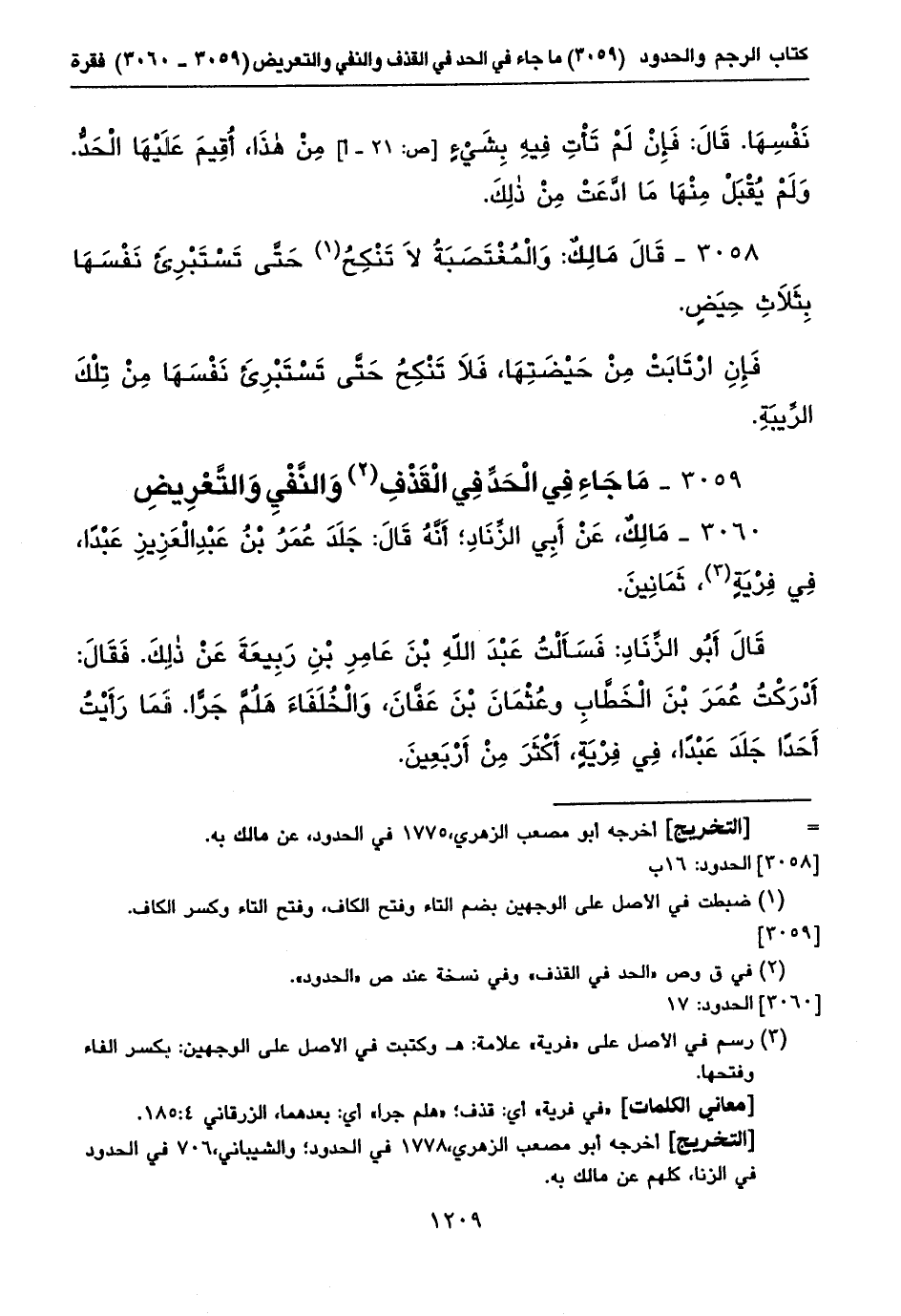 ٣٠٦٠ - مَالِكٌ، عَنْ أَبِي الزِّنَادِ؛ أَنَّهُ قَالَ: جَلَدَ عُمَرُ بْنُ عَبْدِ الْعَزِيزِ عَبْداً، فِي فِرْيَةٍ (١)، ثَمَانِينَ.