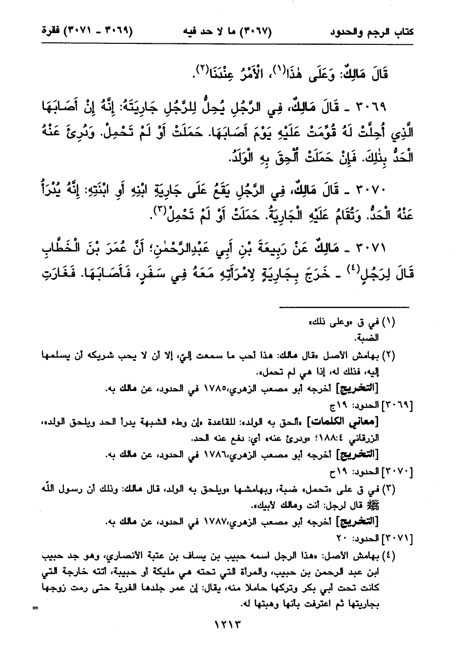 ٣٠٧٠ - قَالَ مَالِكٌ، فِي الرَّجُلِ يَقَعُ عَلَى جَارِيَةِ ابْنِهِ أَوِ ابْنَتِهِ: إِنَّهُ يُدْرَأُ عَنْهُ الْحَدُّ. وَتُقَامُ عَلَيْهِ الْجَارِيَةُ. حَمَلَتْ أَوْ لَمْ تَحْمِلْ (١).