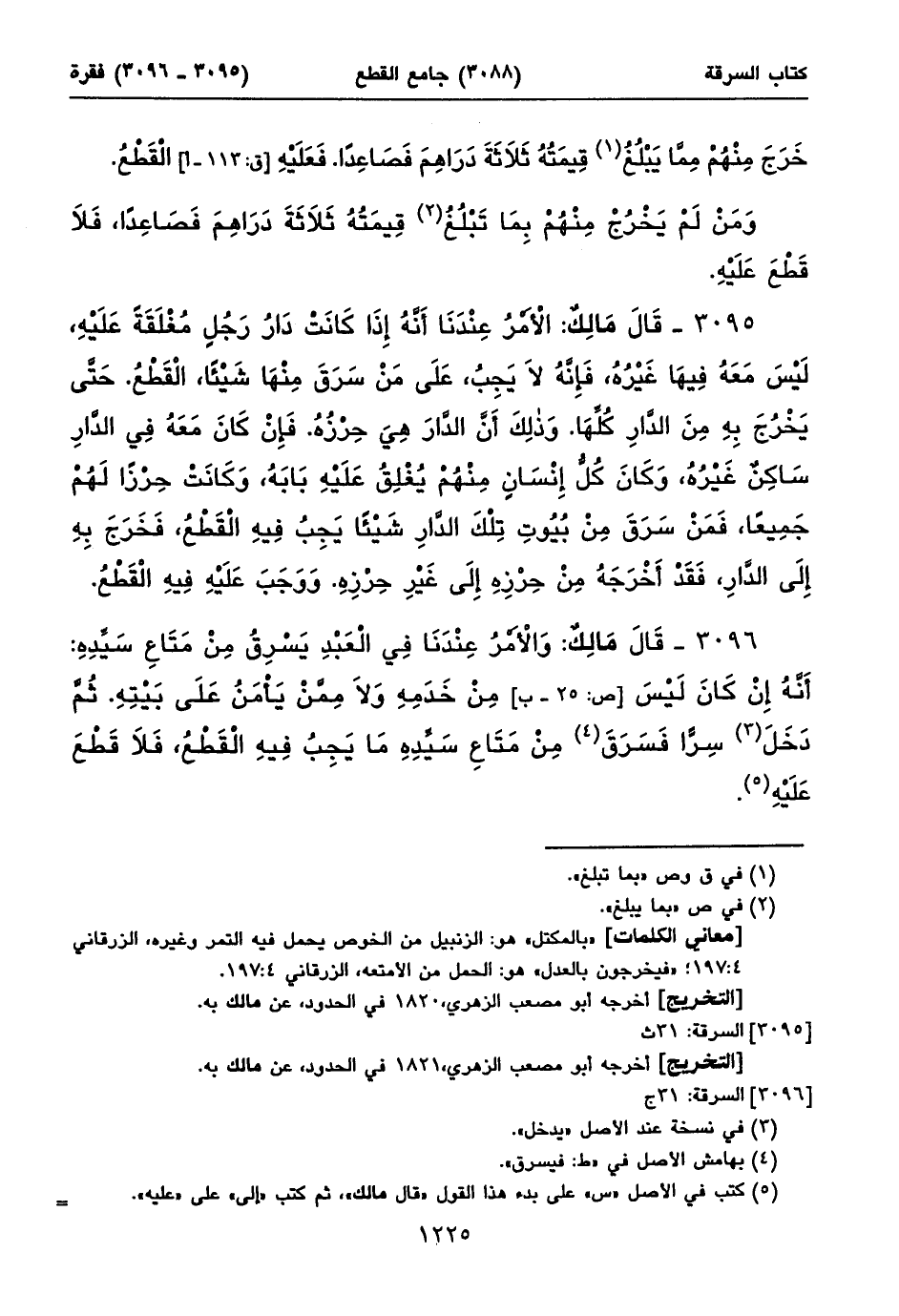 ٣٠٩٦ - قَالَ مَالِكٌ: وَالْأَمْرُ عِنْدَنَا فِي الْعَبْدِ يَسْرِقُ مِنْ مَتَاعِ سَيِّدِهِ: أَنَّهُ إِنْ كَانَ لَيْسَ [ص: ٢٥ - ب] مِنْ خَدَمِهِ وَلَا مِمَّنْ يَأْمَنُ عَلَى بَيْتِهِ. ثُمَّ دَخَلَ (١) سِرّاً فَسَرَقَ (٢) مِنْ مَتَاعِ سَيِّدِهِ مَا يَجِبُ فِيهِ الْقَطْعُ، فَلَا قَطْعَ عَلَيْهِ (٣).