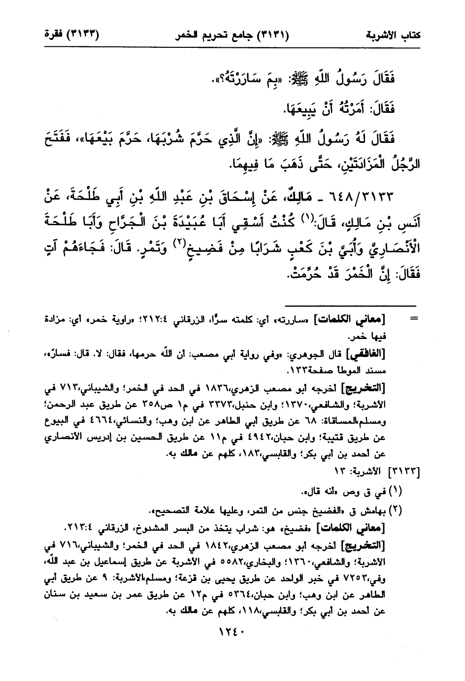 أخرجه أبو مصعب الزهري، ١٨٤٢ في الحد في الخمر؛ والشيباني، ٧١٦ في الأشربة؛ والشافعي، ١٣٦٠؛ والبخاري، ٥٥٨٢ في الأشربة عن طريق إسماعيل بن عبد الله، وفي، ٧٢٥٣ في خبر الواحد عن طريق يحيى بن قزعة؛ ومسلم، الأشربة: ٩ عن طريق أبي الطاهر عن ابن وهب؛ وابن حبان، ٥٣٦٤ في م١٢ عن طريق عمر بن سعيد بن سنان عن أحمد بن أبي بكر؛ والقابسي، ١١٨، كلهم عن مالك به.