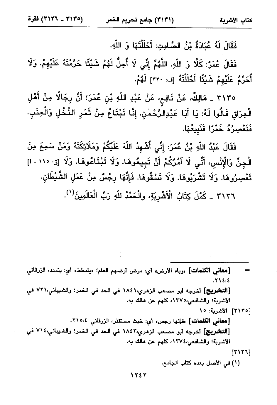 ٣١٣٦ - كَمُلَ كِتَابُ الْأَشْرِبَةِ، والْحَمْدُ للهِ رَبِّ الْعَالَمِينَ (١).