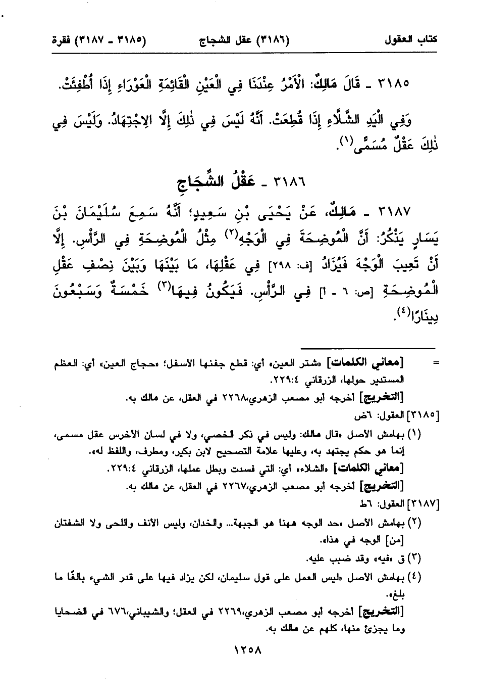 ٣١٨٦ - عَقْلُ الشِّجَاجِ