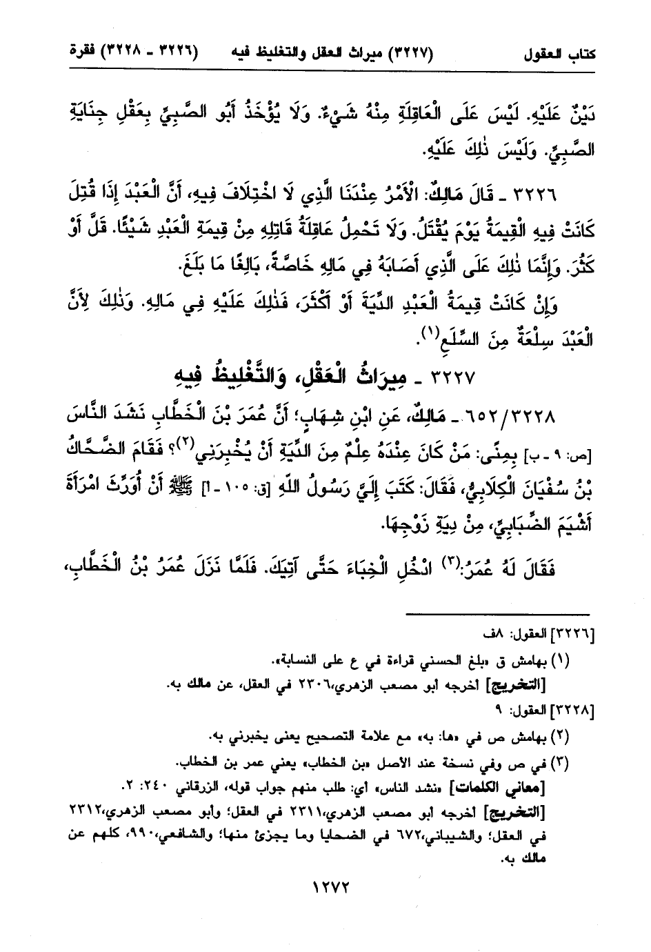 ٣٢٢٧ - مِيرَاثُ الْعَقْلِ، وَالتَّغْلِيظُ فِيهِ