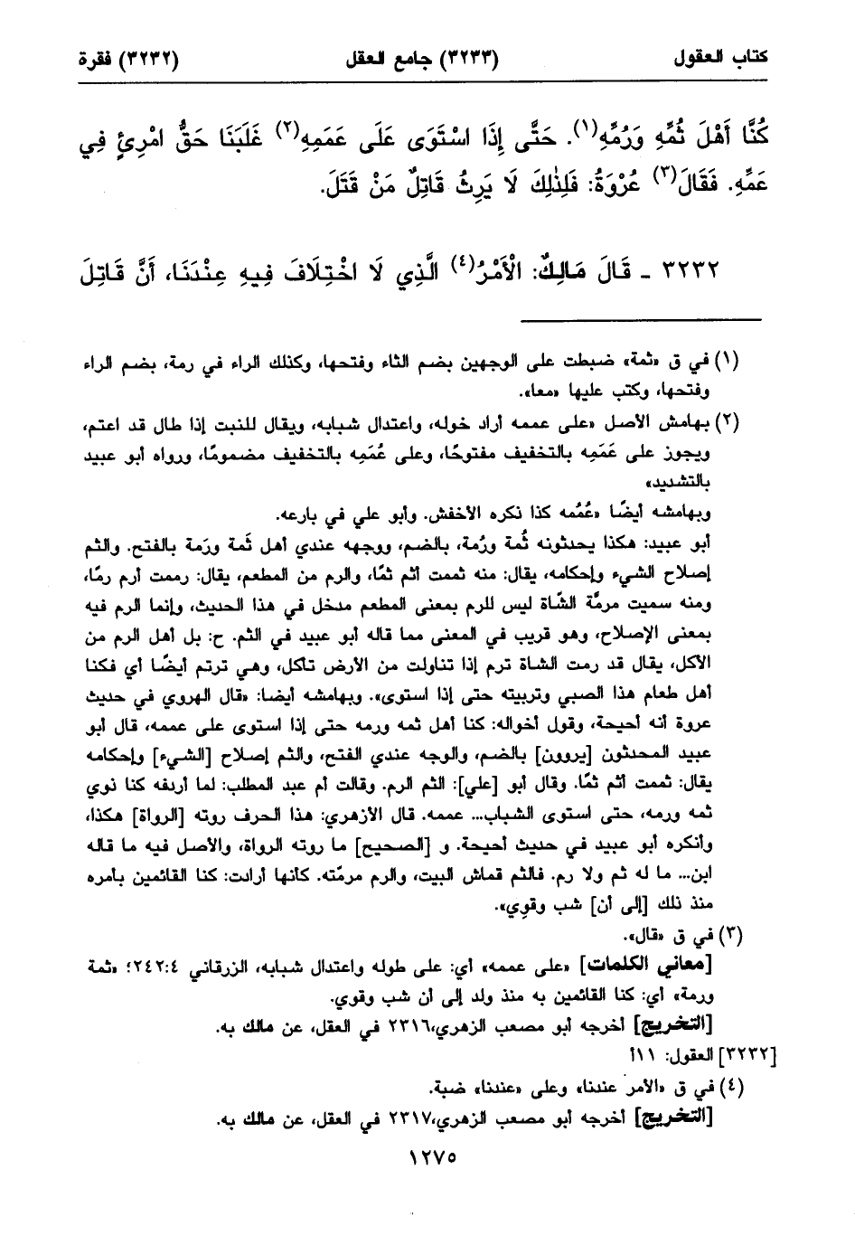 ٣٢٣٢ - قَالَ مَالِكٌ: الْأَمْرُ (١) الَّذِي لَا اخْتِلَافَ فِيهِ عِنْدَنَا، أَنَّ قَاتِلَ ⦗١٢٧٦⦘ الْعَمْدِ لَا يَرِثُ مِنْ دِيَةِ مَنْ قَتَلَ شَيْئاً. وَلَا مِنْ مَالِهِ. وَلَا يَحْجُبُ أَحَداً وَقَعَ لَهُ مِيرَاثٌ. وَأَنَّ الَّذِي يَقْتُلُ خَطَأً لَا يَرِثُ مِنَ الدِّيَةِ شَيْئاً. وَقَدِ اخْتُلِفَ فِي أَنْ يَرِثَ مِنْ مَالِهِ. لِأَنَّهُ لَا [ف: ٣٠٢] يُتَّهَمُ عَلَى أَنَّهُ قَتَلَهُ لِيَرِثَهُ. وَلِيَأْخُذَ مَالَهُ. فَأَحَبُّ إِلَيَّ أَنْ يَرِثَ مِنْ مَالِهِ. وَلَا يَرِثَ مِنْ دِيَتِهِ.