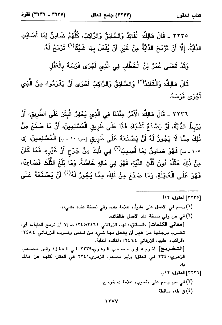 «السائق»: لها، الزرقاني ٤ - ٢٤٦: ٢٤٥؛ « .. إلا أن ترمح الدابة .. » أي: تضرب برجلها من غير أن يفعل بها شيء من نخس وضرب، الزرقاني ٤: ٢٤٨؛ «الراكب»: عليها، الزرقاني ٤: ٢٤٦؛ «القائد»: للدابة.