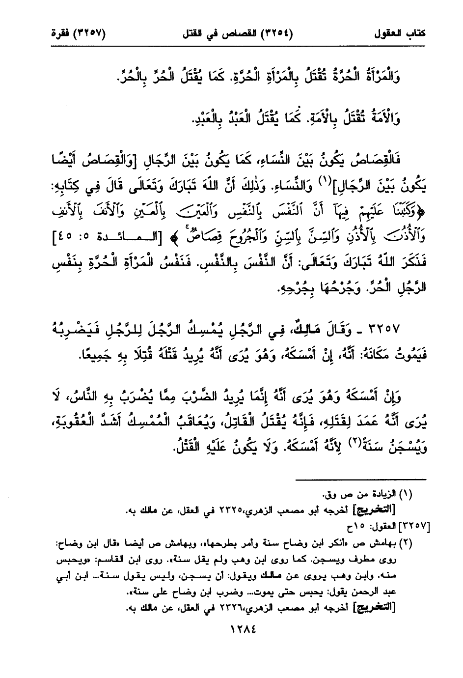 (١) بهامش ص «أنكر ابن وضاح سنة وأمر بطرحها»، وبهامش ص أيضا «قال ابن وضاح: روى مطرف ويسجن. كما روى ابن وهب ولم يقل سنة». روى ابن القاسم: «ويحبس منه. وابن وهب يروى عن مالك ويقول: أن يسجن، وليس يقول سنة ... ابن أبي عبد الرحمن يقول: يحبس حتى يموت ... وضرب ابن وضاح على سنة».