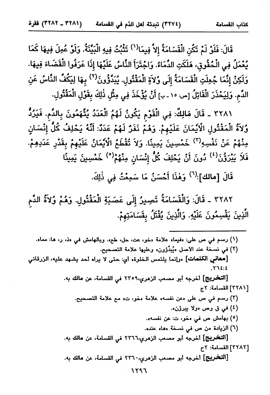 ٣٢٨٢ - قَالَ: وَالْقَسَامَةُ تَصِيرُ إِلَى عَصَبَةِ الْمَقْتُولِ. وَهُمْ وُلَاةُ الدَّمِ الَّذِينَ يَقْسِمُونَ عَلَيْهِ. وَالَّذِينَ يُقْتَلُ بِقَسَامَتِهِمْ.