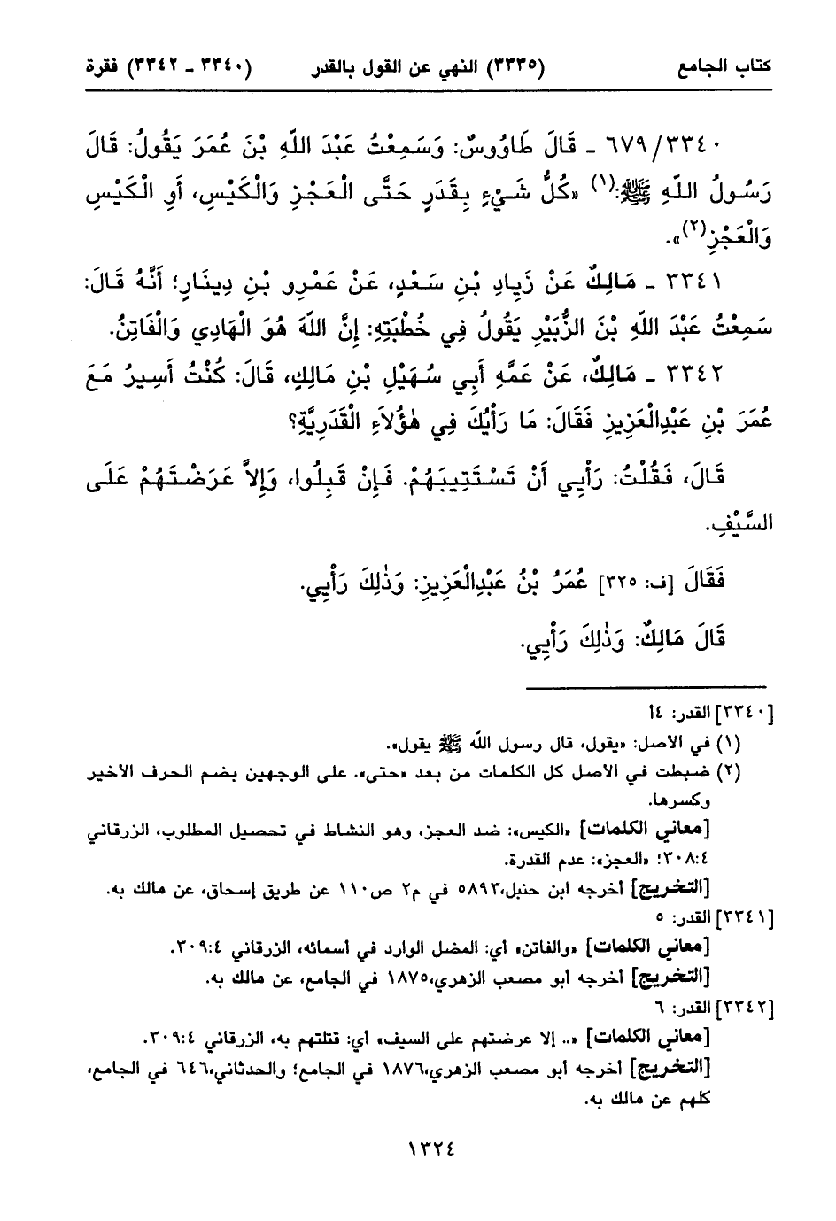 ٣٣٤٠/ ٦٧٩ - قَالَ طَاوُوسٌ: وَسَمِعْتُ عَبْدَ اللهِ بْنَ عُمَرَ يَقُولُ: قَالَ رَسُولُ اللهِ صلى الله عليه وسلم: (١) «كُلُّ شَيْءٍ بِقَدَرٍ حَتَّى الْعَجْزِ وَالْكَيْسِ، أَوِ الْكَيْسِ وَالْعَجْزِ (٢)».