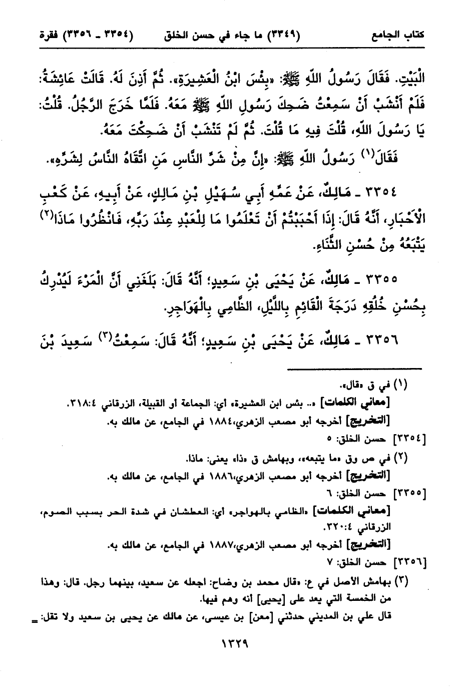 ٣٣٥٥ - مَالِكٌ، عَنْ يَحْيَى بْنِ سَعِيدٍ؛ أَنَّهُ قَالَ: بَلَغَنِي أَنَّ الْمَرْءَ لَيُدْرِكُ بِحُسْنِ خُلُقِهِ دَرَجَةَ الْقَائِمِ بِاللَّيْلِ، الظَّامِي بِالْهَوَاجِرِ.