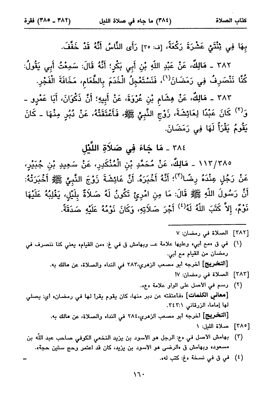 أخرجه أبو مصعب الزهري، ٢٨٥ في النداء والصلاة؛ والشيباني، ١٦٧ في الصلاة؛ وابن حنبل، ٢٥٥٠٣ في م٦ ص١٨٠ عن طريق عبد الرحمن؛ والنسائي، ١٧٨٤ في قيام الليل عن طريق قتيبة بن سعيد؛ وأبو داود، ١٣١٤ في التطوع عن طريق القعنبي؛ والقابسي، ٨٦، كلهم عن مالك به.