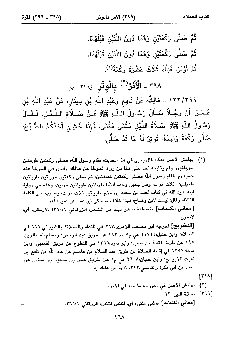 أخرجه أبو مصعب الزهري، ٢٩٨ في النداء والصلاة؛ والحدثاني، ١٠٠ في الصلاة؛ والشيباني، ١٦٤ في الصلاة؛ والشافعي، ١٠٣٣؛ والشافعي، ١٧٨٤؛ والبخاري، ٩٩٠ في الوتر: ١، عن طريق عبد الله بن يوسف؛ ومسلم، المسافرين: ١٤٥ عن طريق يحيى بن يحيى؛ والنسائي، ١٦٩٤ في قيام الليل عن طريق محمد بن سلمة عن ابن القاسم وعن طريق الحارث بن مسكين عن ابن القاسم؛ وأبو داود، ١٣٢٦ في التطوع عن طريق القعنبي؛ والدارمي، ١٤٥٩ في الأذان عن طريق خالد بن مخلد، وفي، ١٥٨٤ في الأذان عن طريق خالد بن مخلد؛ والقابسي، ٢٠٢، كلهم عن مالك به.
