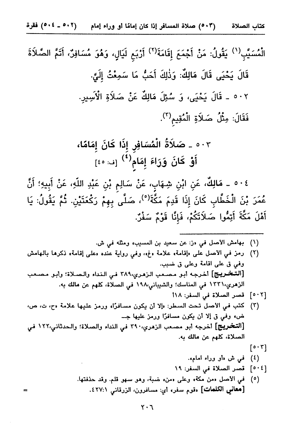 ٥٠٣ - صَلَاةُ الْمُسَافِرِ إِذَا كَانَ إِمَاماً، أَوْ كَانَ وَرَاءَ إِمَامٍ (١) [ف: ٤٥]