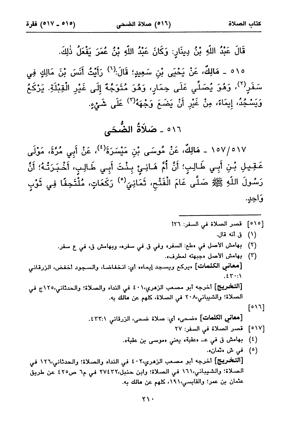 أخرجه أبو مصعب الزهري، ٤٠٢ في النداء والصلاة؛ والحدثاني، ١٢٦ في الصلاة؛ والشيباني، ١٦١ في الصلاة؛ وابن حنبل، ٢٧٤٣٢ في م٦ ص٤٢٥ عن طريق عثمان بن عمر؛ والقابسي، ١٩١، كلهم عن مالك به.