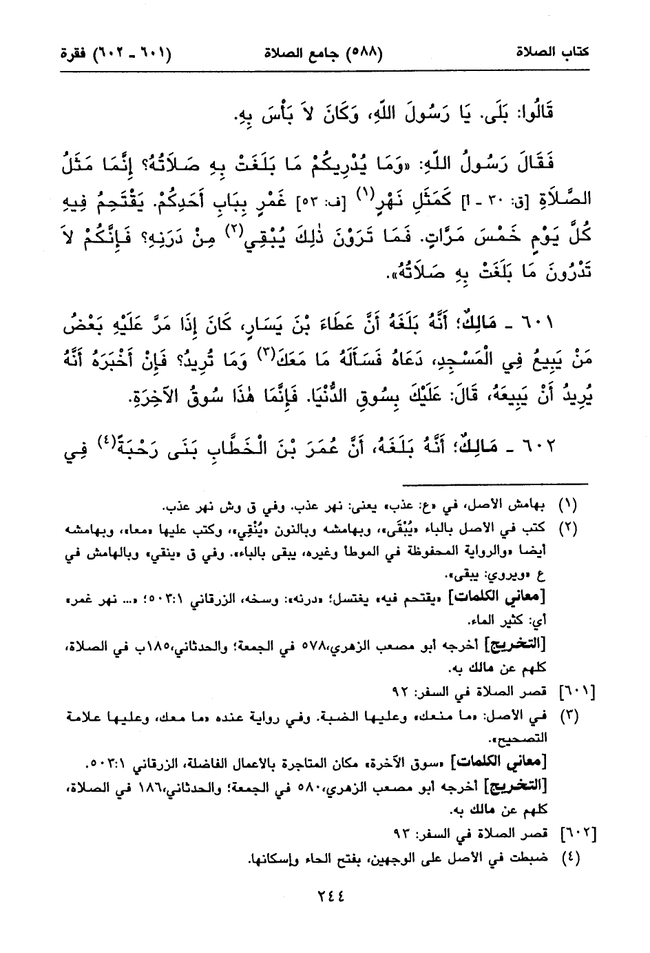 (٣) بهامش الأصل «في كتاب سيبويه: رَحَبَةً، بفتح الحاء، وحكى السيرافي عن أبي زيد: رَحْبَةً، وَرَحَبةً». بهامش ق هكذا رواه يحيى عن مالك أنه بلغه أن، والصواب: مالك، عن أبي النضرة عن سالم بن عبد الله أن عمر بن الخطاب.