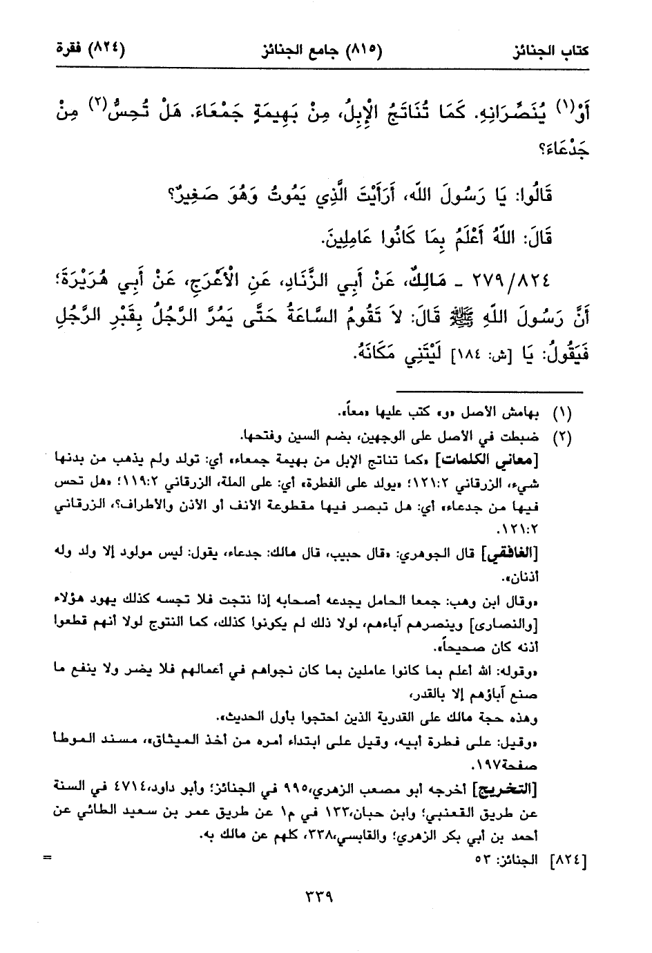 أخرجه أبو مصعب الزهري، ٩٧٥ في الجنائز؛ والحدثاني، ٤٠١أفي الجنائز؛ وابن حنبل، ٧٢٢٦ في م٢ ص٢٣٦ عن طريق عبد الرحمن بن مهدي؛ والبخاري، ٧١١٥ في الفتن عن طريق إسماعيل؛ ومسلم، الفتن: ٥٣ عن طريق قتيبة بن سعيد؛ وابن حبان، ٦٧٠٧ في م١٥ عن طريق عمر بن سعيد بن سنان عن أحمد بن أبي بكر؛ والقابسي، ٣٣٩، كلهم عن مالك به.