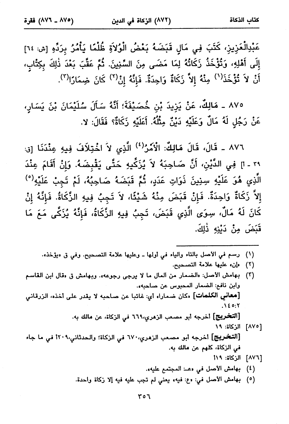 أخرجه أبو مصعب الزهري، ٦٧٠ في الزكاة؛ والحدثاني، ٢٠٩أفي ما جاء في الزكاة، كلهم عن مالك به.