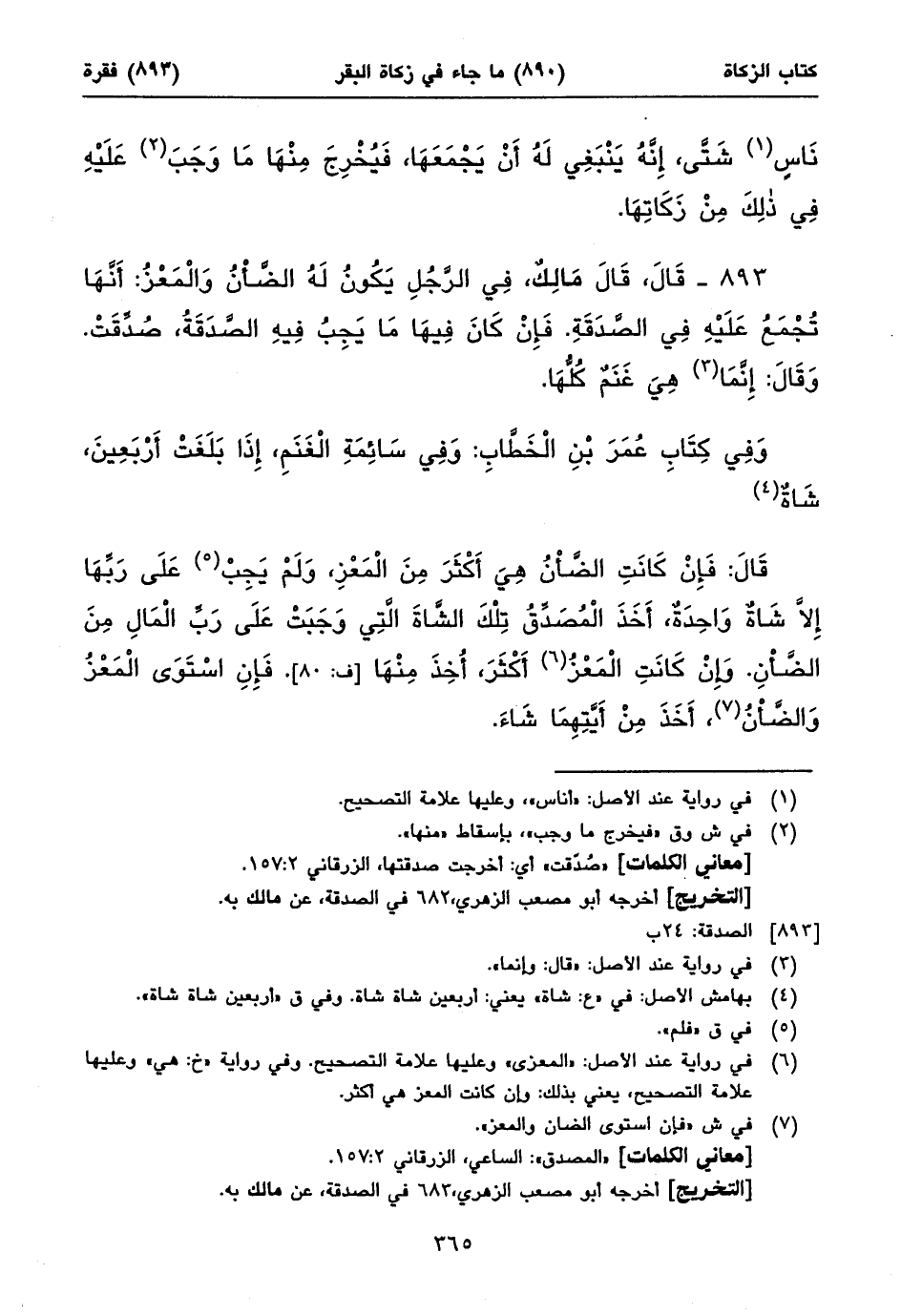 ٨٩٣ - قَالَ، قَالَ مَالِكٌ، فِي الرَّجُلِ يَكُونُ لَهُ الضَّأْنُ وَالْمَعْزُ: أَنَّهَا تُجْمَعُ عَلَيْهِ فِي الصَّدَقَةِ. فَإِنْ كَانَ فِيهَا مَا يَجِبُ فِيهِ الصَّدَقَةُ، صُدِّقَتْ. وَقَالَ: إِنَّمَا (١) هِيَ غَنَمٌ كُلُّهَا.