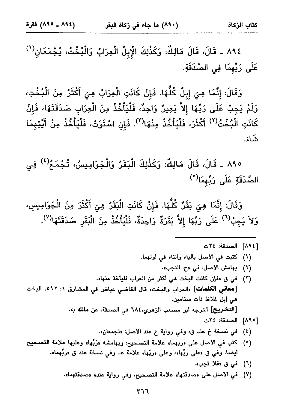 ٨٩٥ - قَالَ، قَالَ مَالِكٌ: وَكَذلِكَ الْبَقَرُ وَالْجَوَامِيسُ، تُجْمَعُ (١) فِي الصَّدَقَةِ عَلَى رَبِّهِمَا (٢)