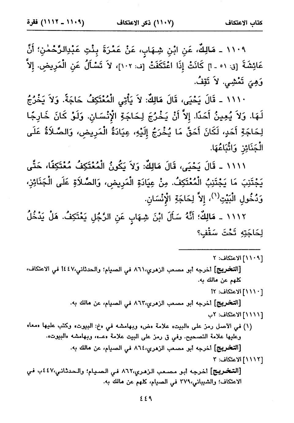 أخرجه أبو مصعب الزهري، ٨٦٢ في الصيام؛ والحدثاني، ٤٤٧ب في الاعتكاف؛ والشيباني، ٣٧٩ في الصيام، كلهم عن مالك به.