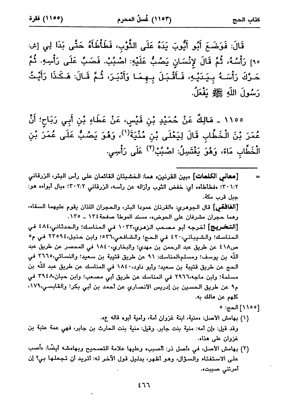 «أتريد أن تجعلها بي؟» أي: تجعلني أفتيك وتنحي الفتيا عن نفسك، الزرقاني ٢: ٣٠٣؛ «شعثا» لأن الماء يلبد الشعر ويدخله مع ذلك الغبار، الزرقاني ٢: ٣٠٣