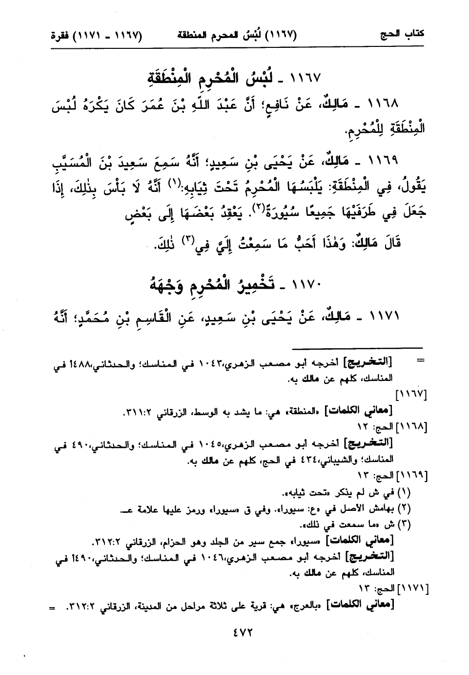 ١١٦٩ - مَالِكٌ، عَنْ يَحْيَى بْنِ سَعِيدٍ؛ أَنَّهُ سَمِعَ سَعِيدَ بْنَ الْمُسَيَّبِ يَقُولُ، فِي الْمِنْطَقَةِ: يَلْبَسُهَا الْمُحْرِمُ تَحْتَ ثِيَابِهِ: (١) أَنَّهُ لَا بَأْسَ بِذلِكَ، إِذَا جَعَلَ فِي طَرَفَيْهَا جَمِيعاً سُيُورَةً (٢). يَعْقِدُ بَعْضَهَا إِلَى بَعْضٍ