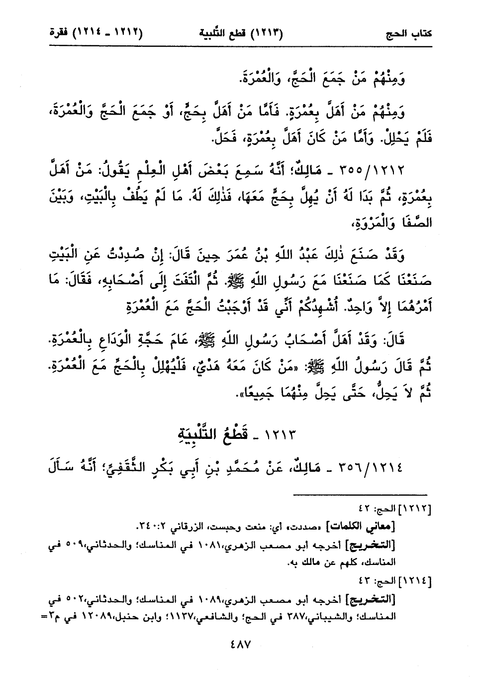 أخرجه أبو مصعب الزهري، ١٠٨١ في المناسك؛ والحدثاني، ٥٠٩ في المناسك، كلهم عن مالك به.