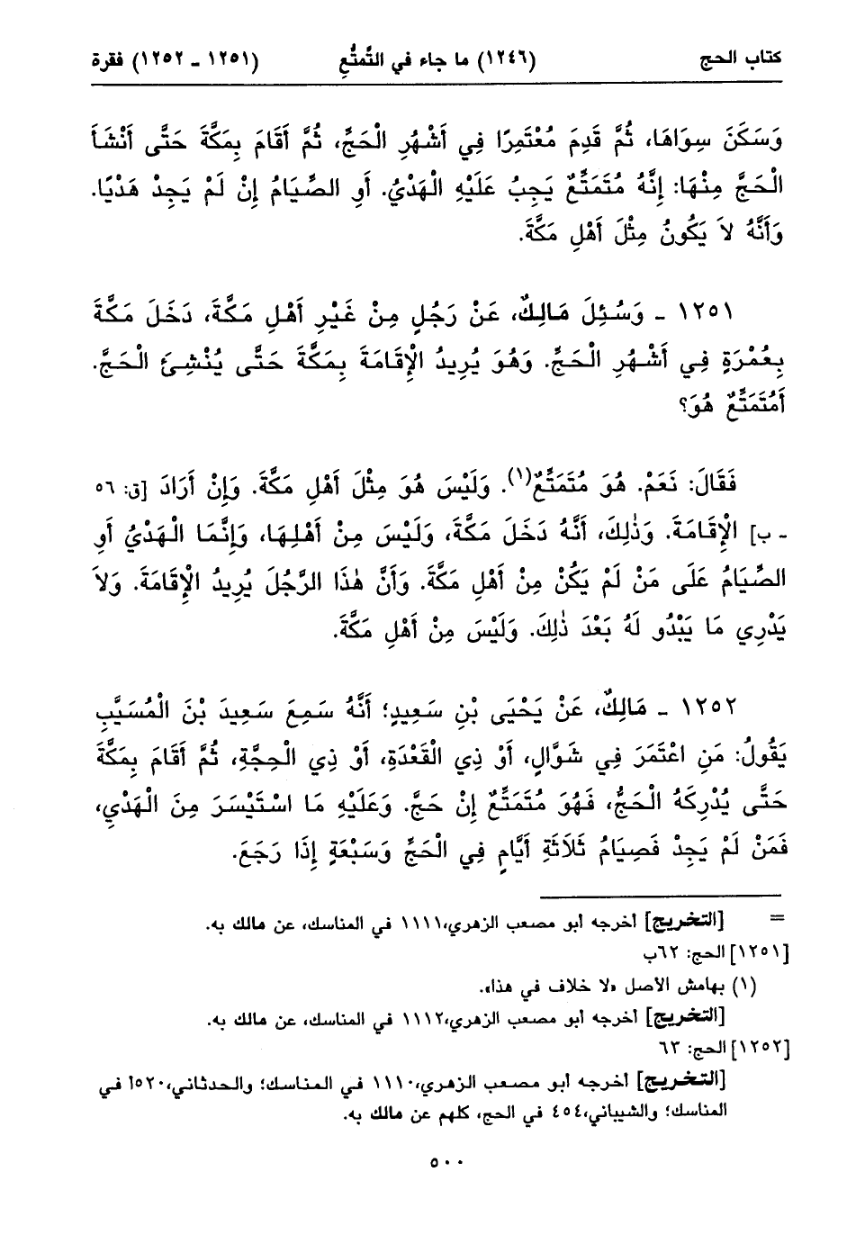 أخرجه أبو مصعب الزهري، ١١١٠ في المناسك؛ والحدثاني، ٥٢٠أفي المناسك؛ والشيباني، ٤٥٤ في الحج، كلهم عن مالك به.