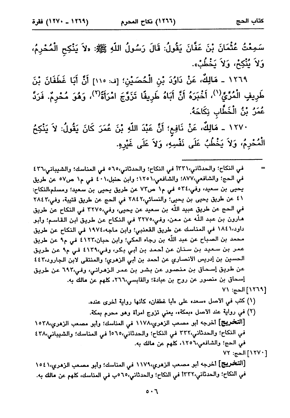 أخرجه أبو مصعب الزهري، ١١٧٩ في المناسك؛ وأبو مصعب الزهري، ١٥٤١ في النكاح؛ والحدثاني، ٣٣٢أفي النكاح؛ والحدثاني، ٥٦٥ب في المناسك، كلهم عن مالك به.