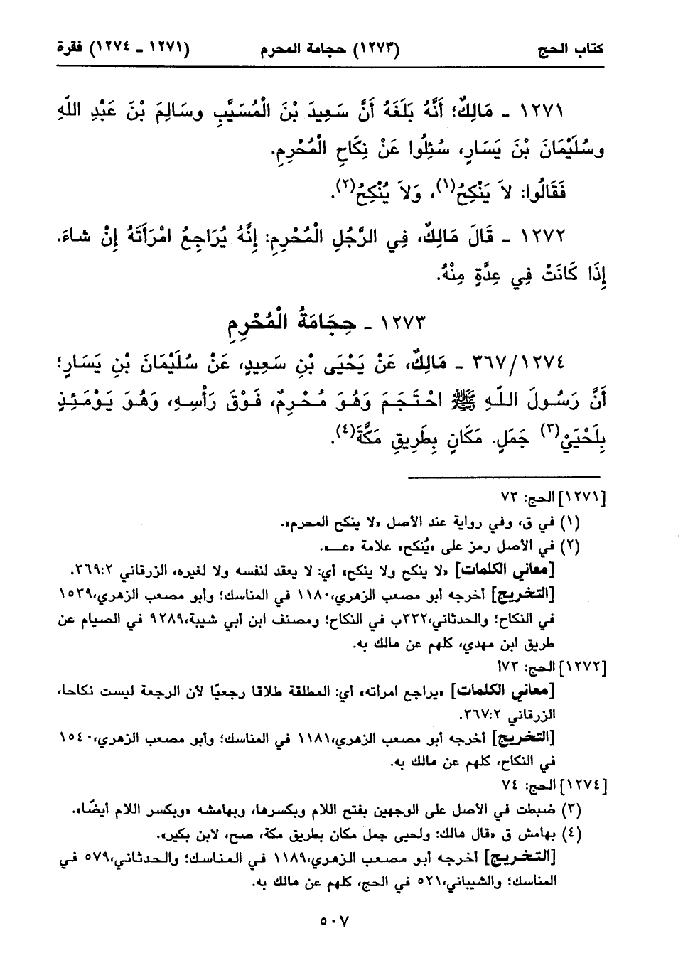 أخرجه أبو مصعب الزهري، ١١٨٠ في المناسك؛ وأبو مصعب الزهري، ١٥٣٩ في النكاح؛ والحدثاني، ٣٣٢ب في النكاح؛ ومصنف ابن أبي شيبة، ٩٢٨٩ في الصيام عن طريق ابن مهدي، كلهم عن مالك به.