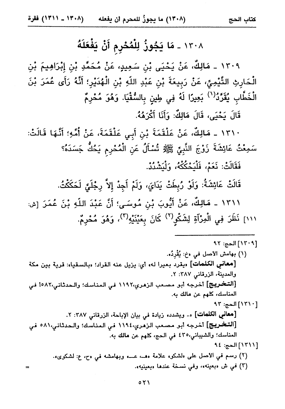 أخرجه أبو مصعب الزهري، ١١٩٤ في المناسك؛ والحدثاني، ٥٨١ في المناسك؛ والشيباني، ٤٣٥ في الحج، كلهم عن مالك به.