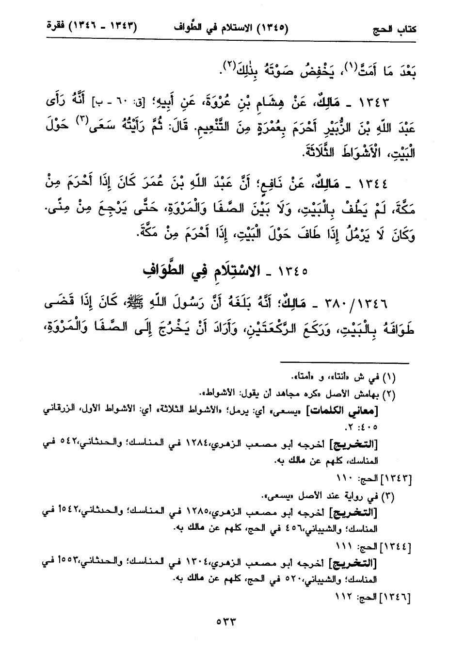 أخرجه أبو مصعب الزهري، ١٣٠٤ في المناسك؛ والحدثاني، ٥٥٣أفي المناسك؛ والشيباني، ٥٢٠ في الحج، كلهم عن مالك به.