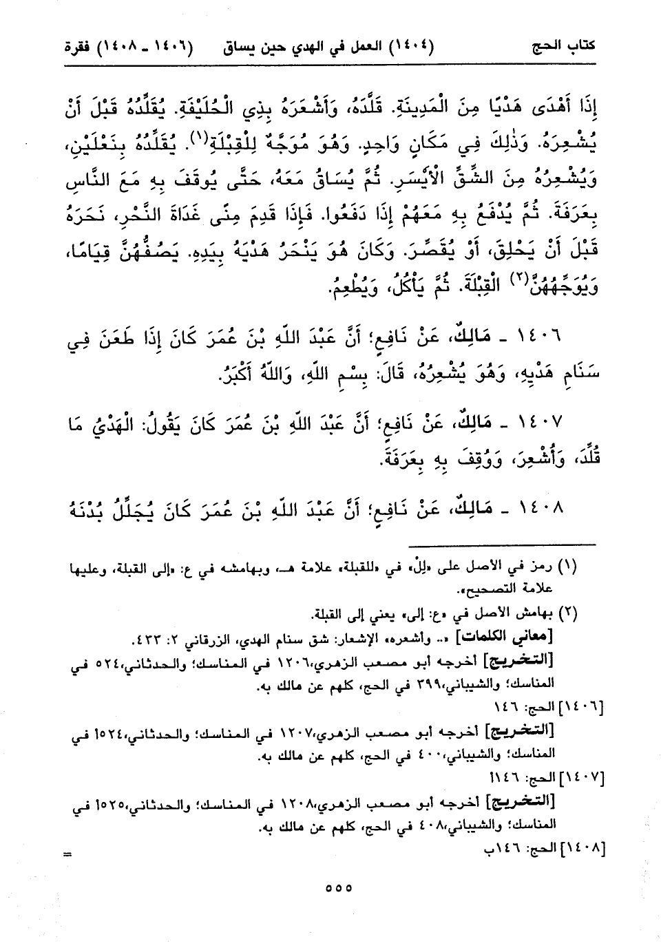 أخرجه أبو مصعب الزهري، ١٢٠٧ في المناسك؛ والحدثاني، ٥٢٤أفي المناسك؛ والشيباني، ٤٠٠ في الحج، كلهم عن مالك به.