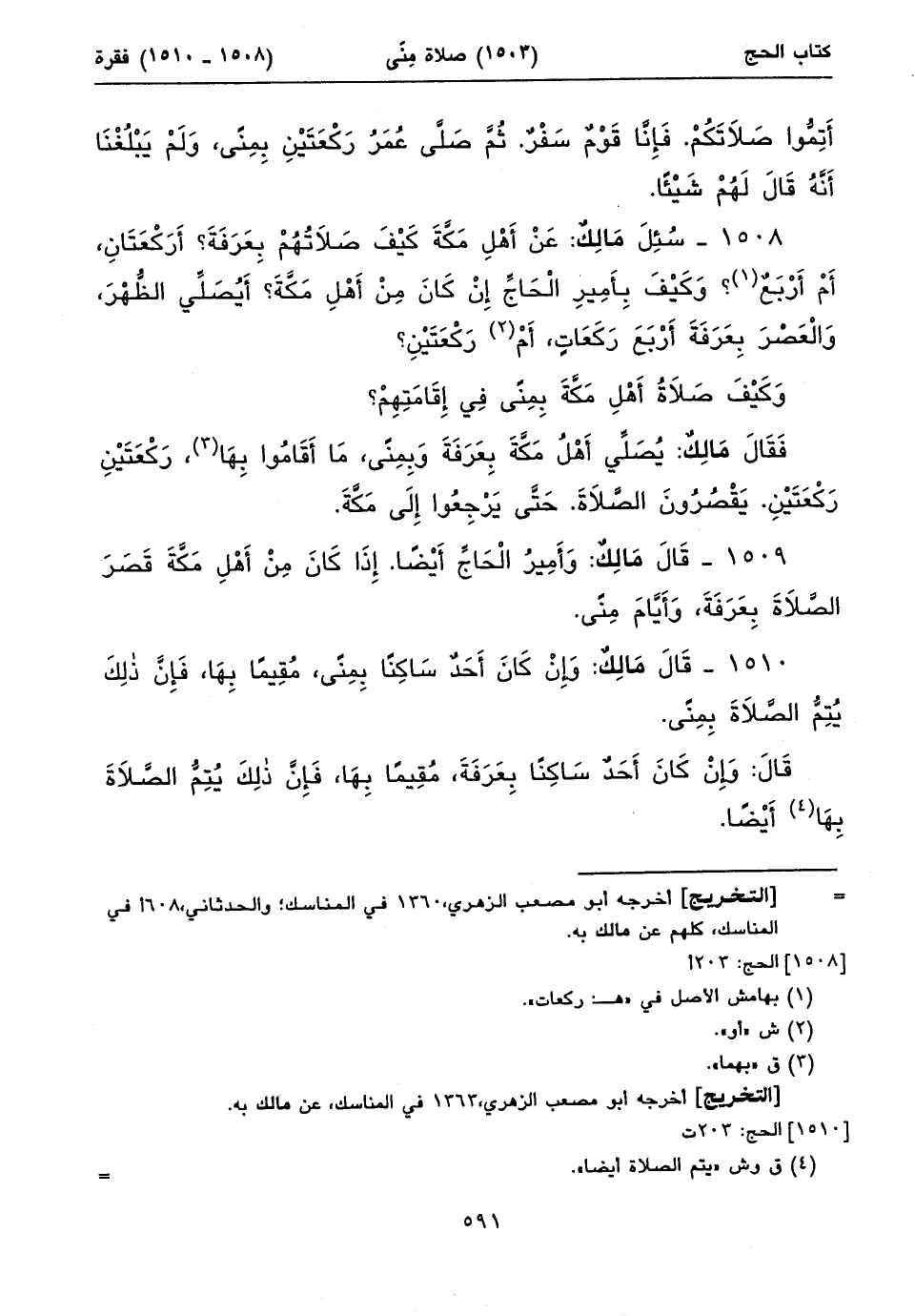 ١٥٠٨ - سُئِلَ مَالِكٌ: عَنْ أَهْلِ مَكَّةَ كَيْفَ صَلَاتُهُمْ بِعَرَفَةَ؟ أَرَكْعَتَانِ، أَمْ أَرْبَعٌ (١)؟ وَكَيْفَ بِأَمِيرِ الْحَاجِّ إِنْ كَانَ مِنْ أَهْلِ مَكَّةَ؟ أَيُصَلِّي الظُّهْرَ، وَالْعَصْرَ بِعَرَفَةَ أَرْبَعَ رَكَعَاتٍ، أَمْ (٢) رَكْعَتَيْنِ؟ وَكَيْفَ صَلَاةُ أَهْلِ مَكَّةَ بِمِنًى فِي إِقَامَتِهِمْ؟