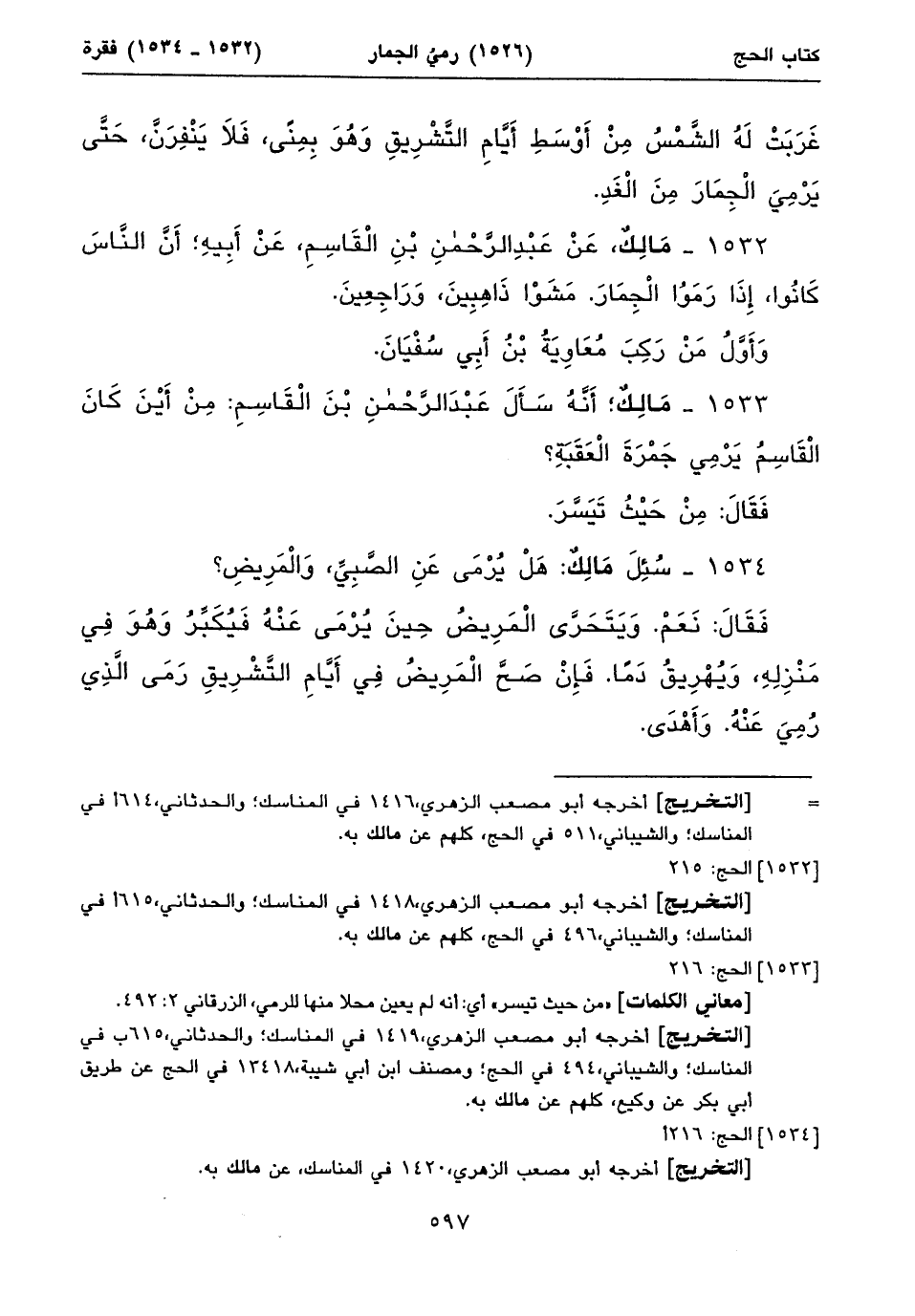أخرجه أبو مصعب الزهري، ١٤١٨ في المناسك؛ والحدثاني، ٦١٥أفي المناسك؛ والشيباني، ٤٩٦ في الحج، كلهم عن مالك به.