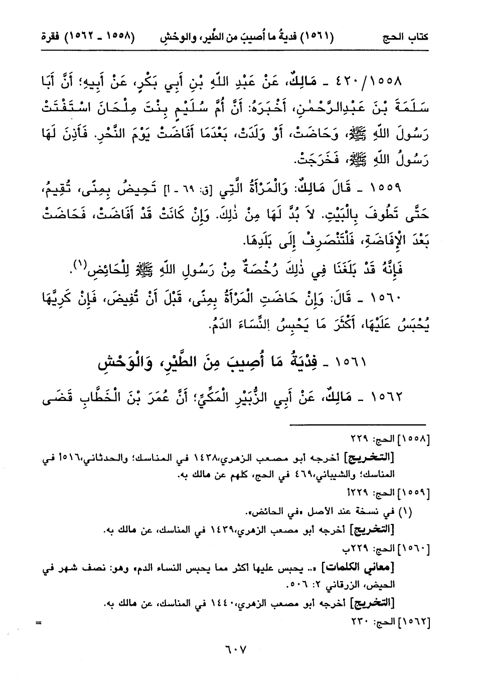 أخرجه أبو مصعب الزهري، ١٢٤٤ في المناسك؛ والحدثاني، ٥٨٨ في المناسك؛ والشيباني، ٥٠٣ في الحج؛ والشافعي، ١١١٠، كلهم عن مالك به.