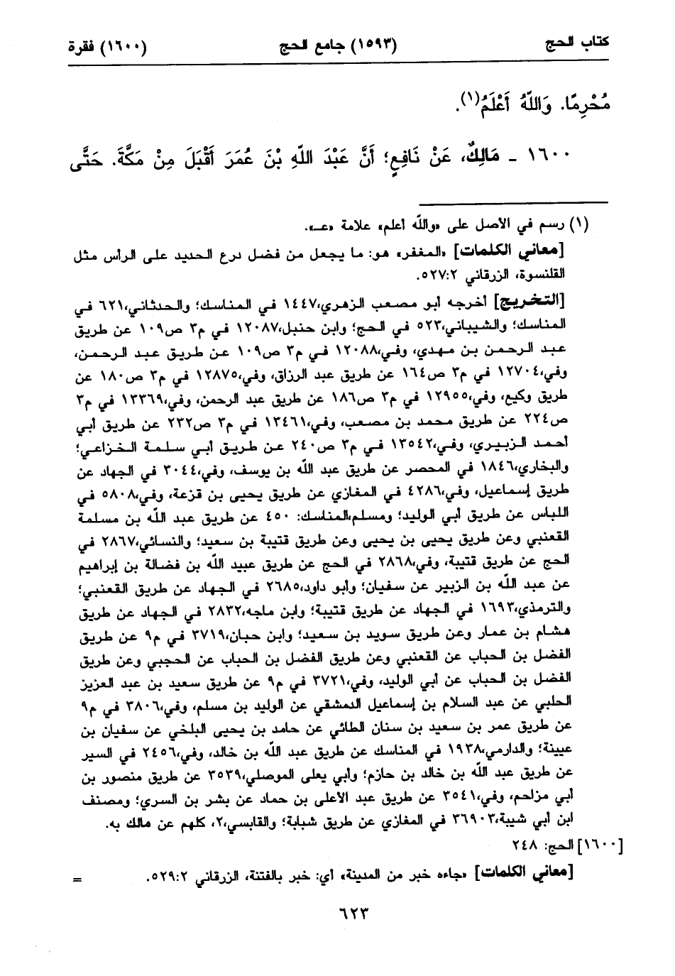 أخرجه أبو مصعب الزهري، ١٤٤٨ في المناسك؛ والحدثاني، ٦٢١أفي المناسك؛ والشيباني، ٤٦٠ في الحج، كلهم عن مالك به.