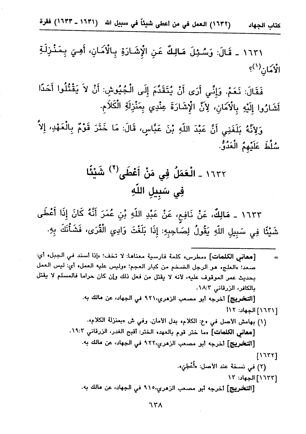 ١٦٣٣ - مَالِكٌ، عَنْ نَافِعٍ، عَنْ عَبْدِ اللهِ بْنِ عُمَرَ أَنَّهُ كَانَ إِذَا أَعْطَى شَيْئاً فِي سَبِيلِ اللهِ يَقُولُ لِصَاحِبِهِ: إِذَا بَلَغْتَ وَادِي الْقُرَى، فَشَأْنَكَ بِهِ.