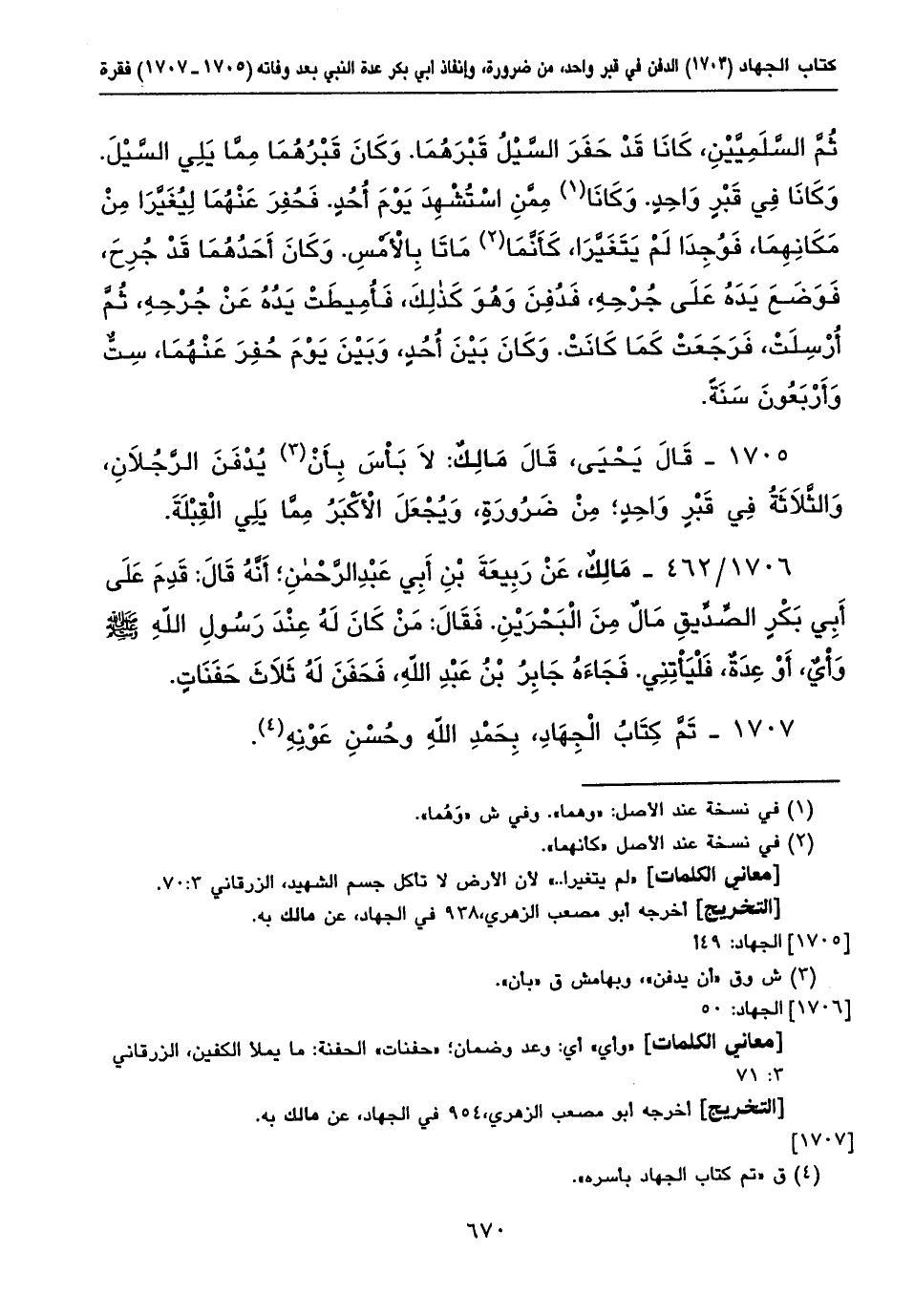 ١٧٠٧ - تَمَّ كِتَابُ الْجِهَادِ، بِحَمْدِ اللهِ وحُسْنِ عَوْنِهِ (١).