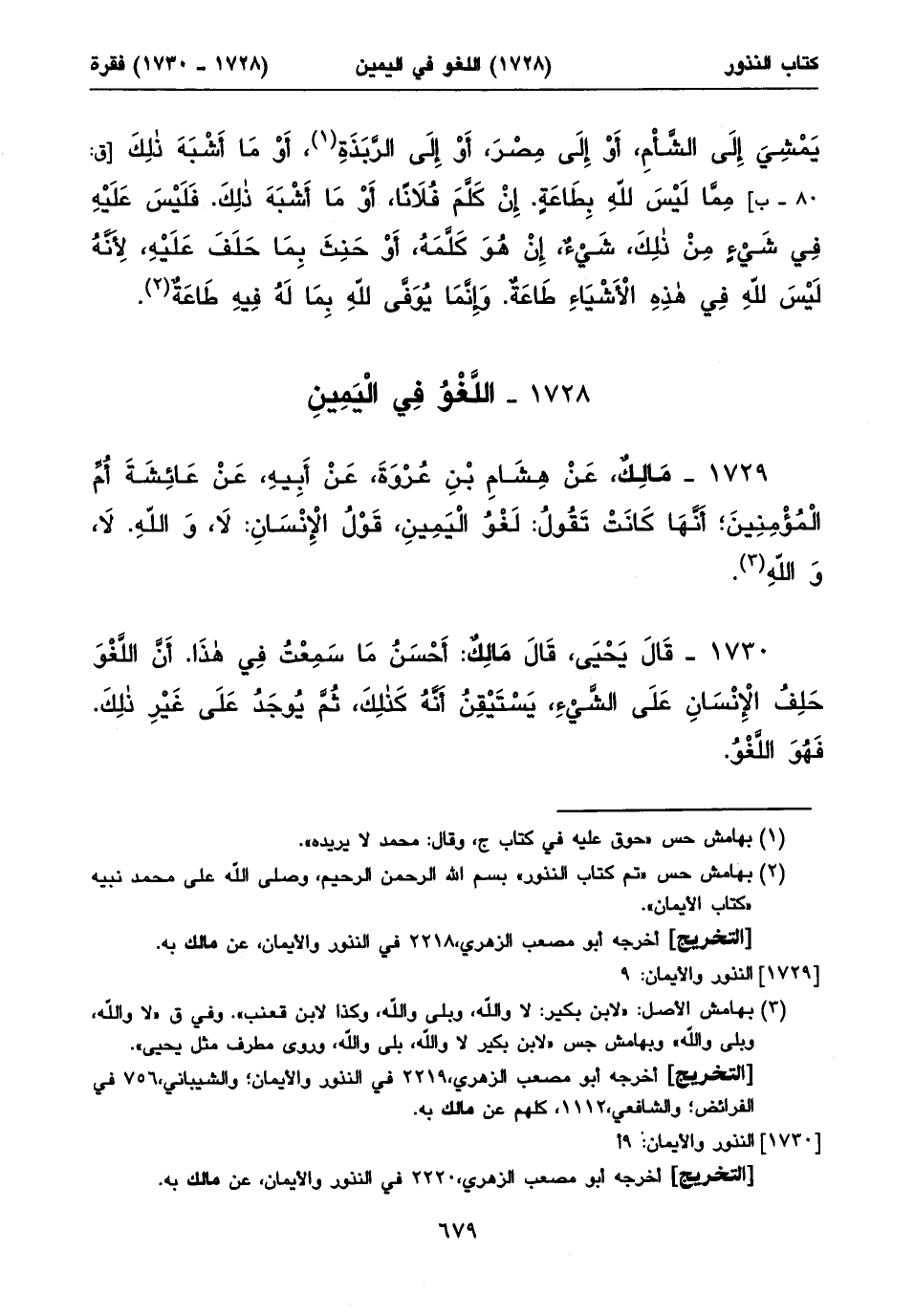 ١٧٢٨ - اللَّغْوُ فِي الْيَمِينِ