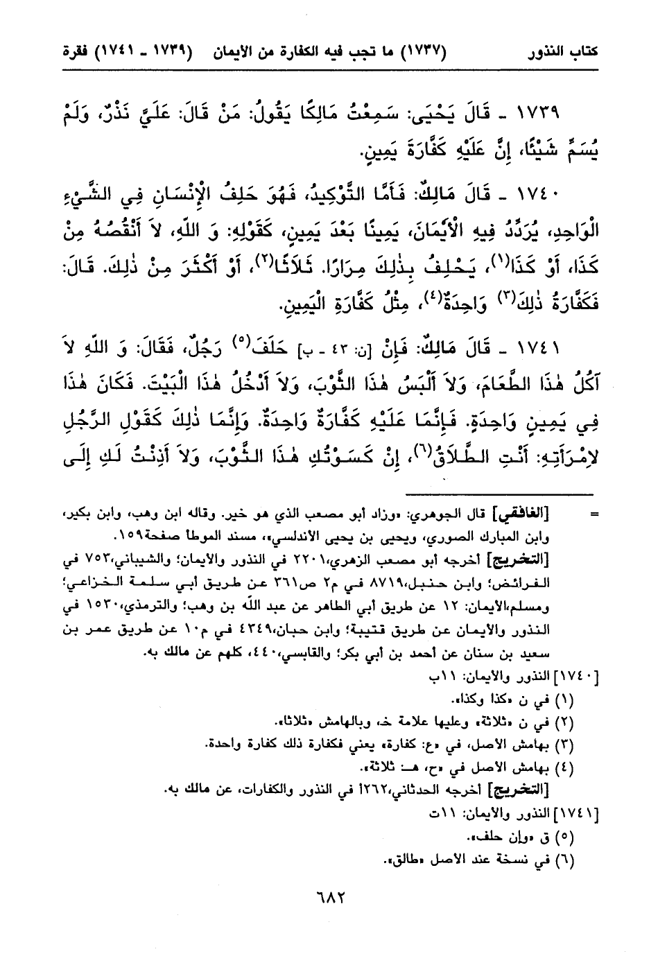 أخرجه الحدثاني، ٢٦٢أفي النذور والكفارات، عن مالك به.