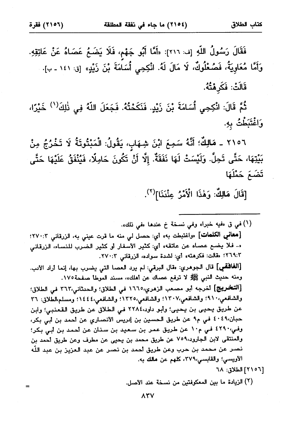 أخرجه أبو مصعب الزهري، ١٦٦٦ في الطلاق؛ والحدثاني، ٣٦٣أفي الطلاق، كلهم عن مالك به.