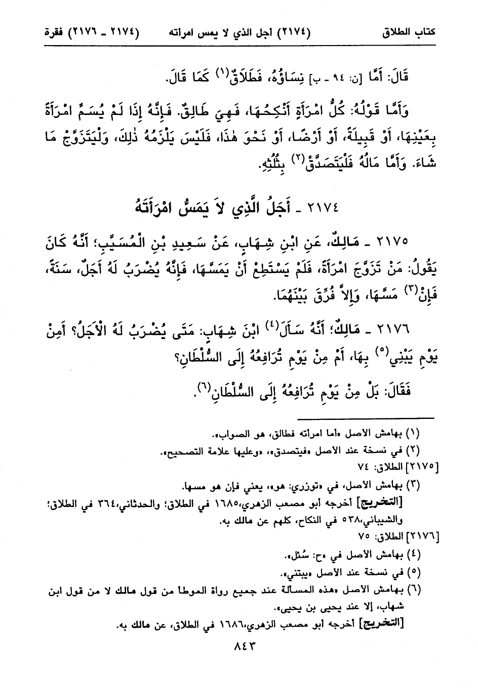 أخرجه أبو مصعب الزهري، ١٦٨٥ في الطلاق؛ والحدثاني، ٣٦٤ في الطلاق؛ والشيباني، ٥٣٨ في النكاح، كلهم عن مالك به.